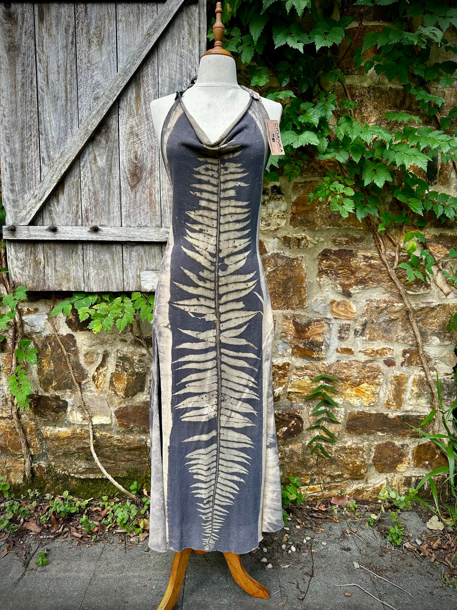 This dress was created from ethically sourced blend of hemp and organic cotton dyed with ferns from our subtropical home.