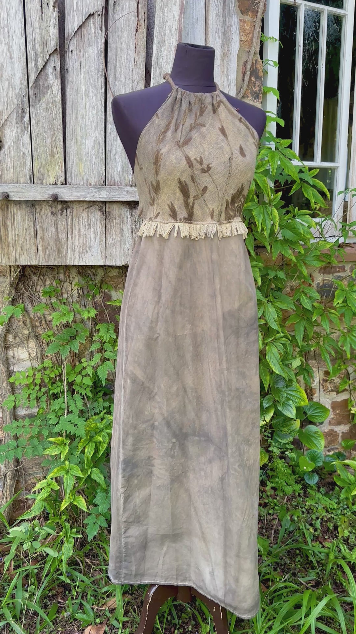The Eucalyptus plant matter used to dye the dress is sourced in Wathaurong Country