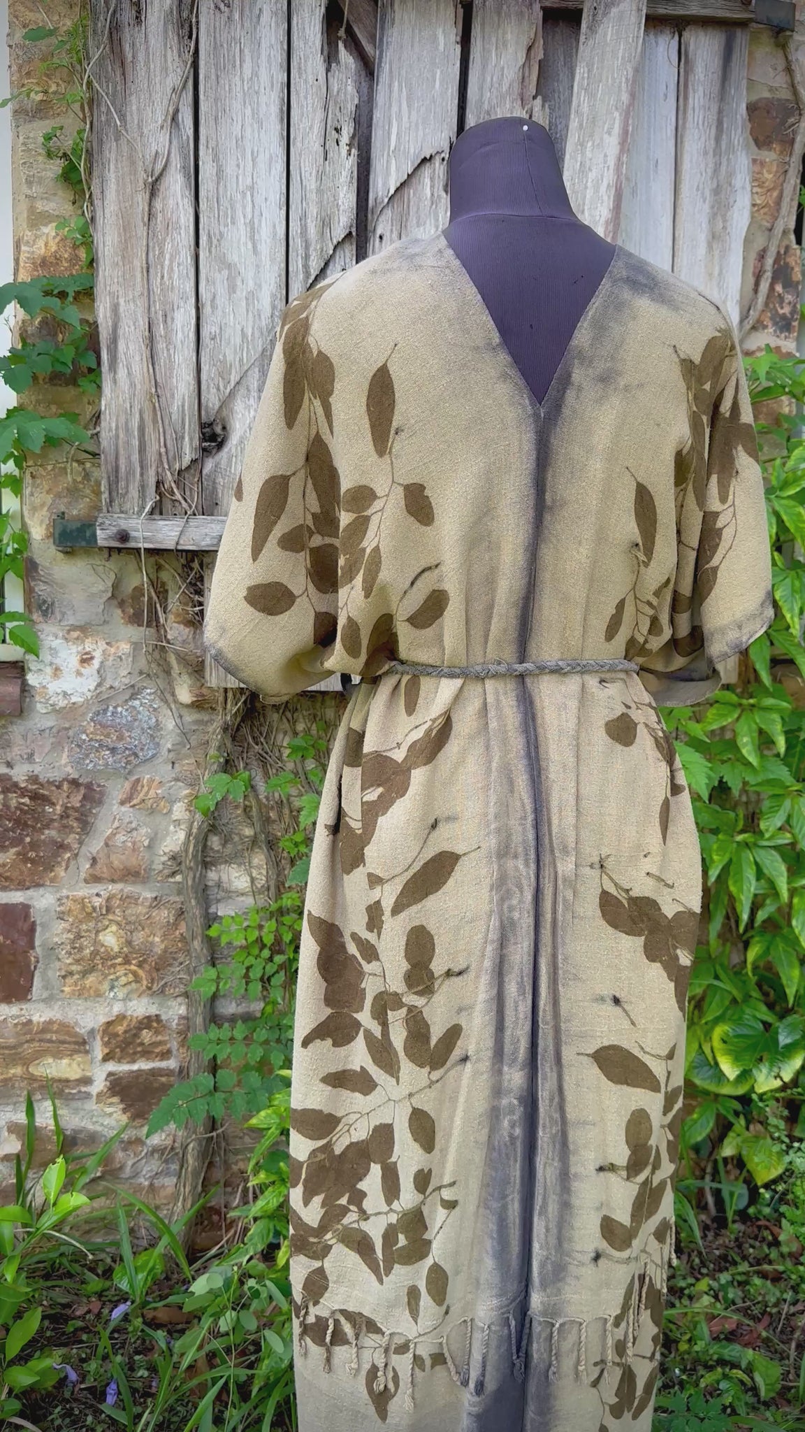 This piece needs to be cared for as you would care for yourself or any other living organism. They are imprinted with living colour that morphiates and changes as you engage with it. The PH of your water or the detergent you use will alter and change the colour pallet, and allow this piece to change with you. Only wash it when it feels dirty, wash in gently in cold water. Don’t use nasty chemicals, keep it natural. Dry it in the shade and mend it if it needs repairs. I do offer re-dyes/repairs if you decided years later you want it to be refreshed. The fabric holds memory so it's always beautiful to cleanse and re-energise it with new seasonal energy.