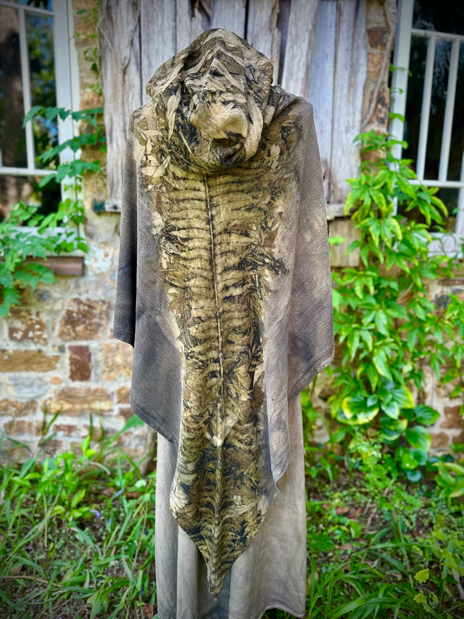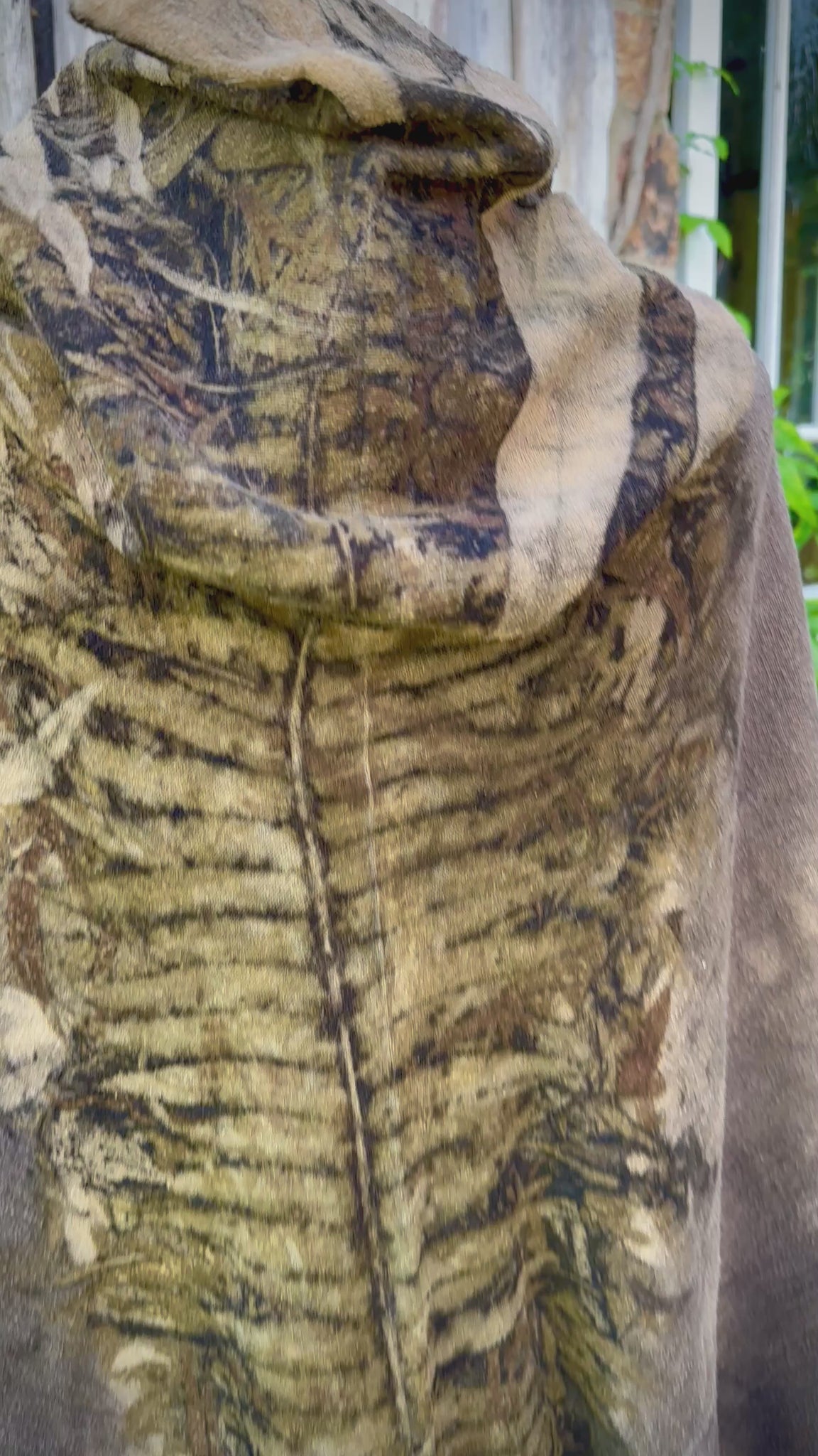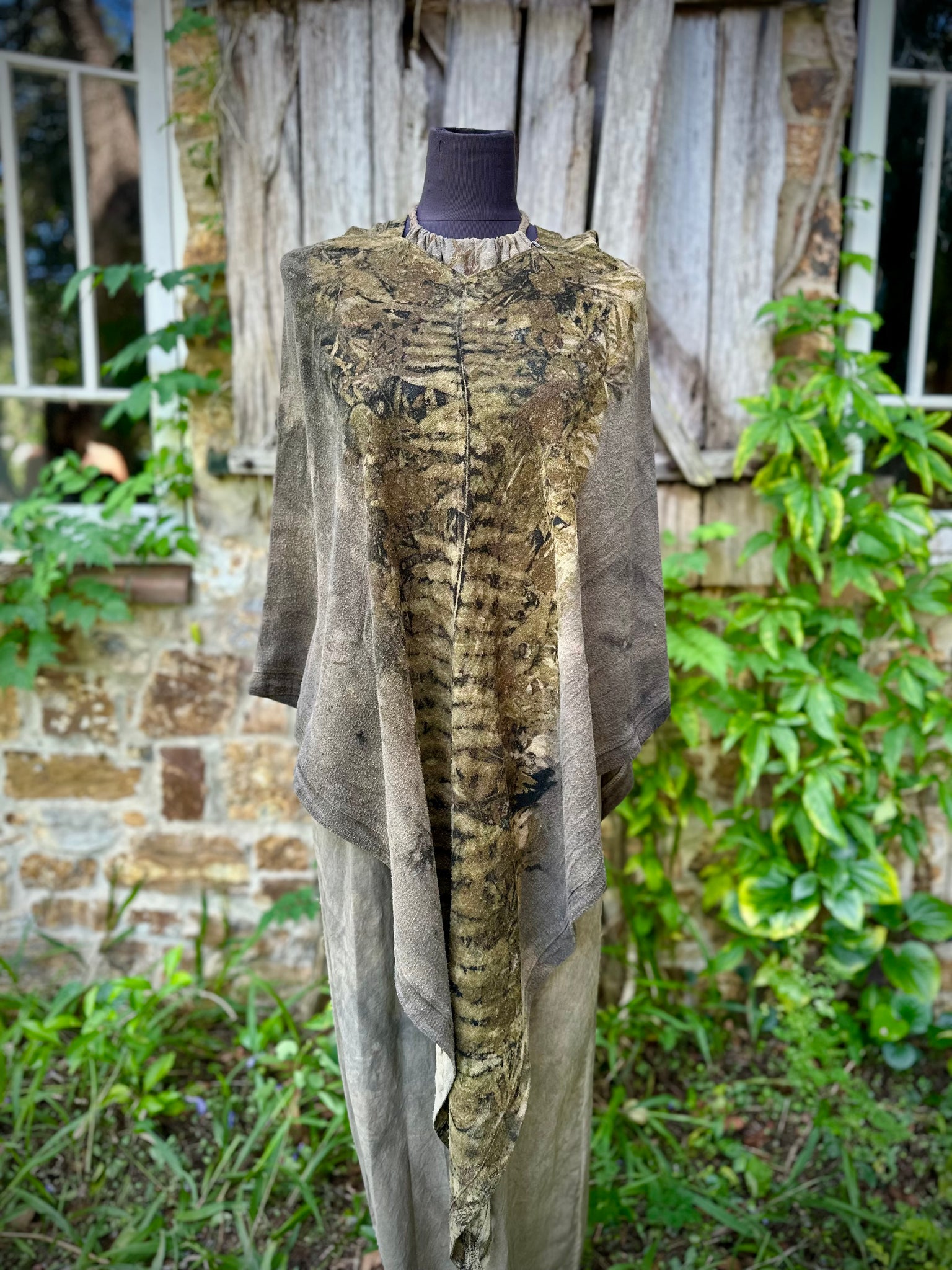 This piece needs to be cared for as you would care for yourself or any other living organism. They are imprinted with living colour that morphiates and changes as you engage with it. The PH of your water or the detergent you use will alter and change the colour pallet, and allow this piece to change with you. Only wash it when it feels dirty, wash in gently in cold water. Don’t use nasty chemicals, keep it natural. Dry it in the shade and mend it if it needs repairs. I do offer re-dyes/repairs if you decided years later you want it to be refreshed. The fabric holds memory so it's always beautiful to cleanse and re-energise it with new seasonal energy.