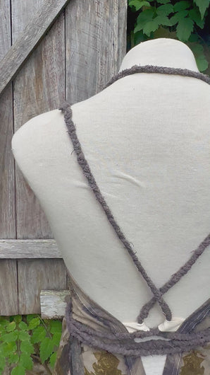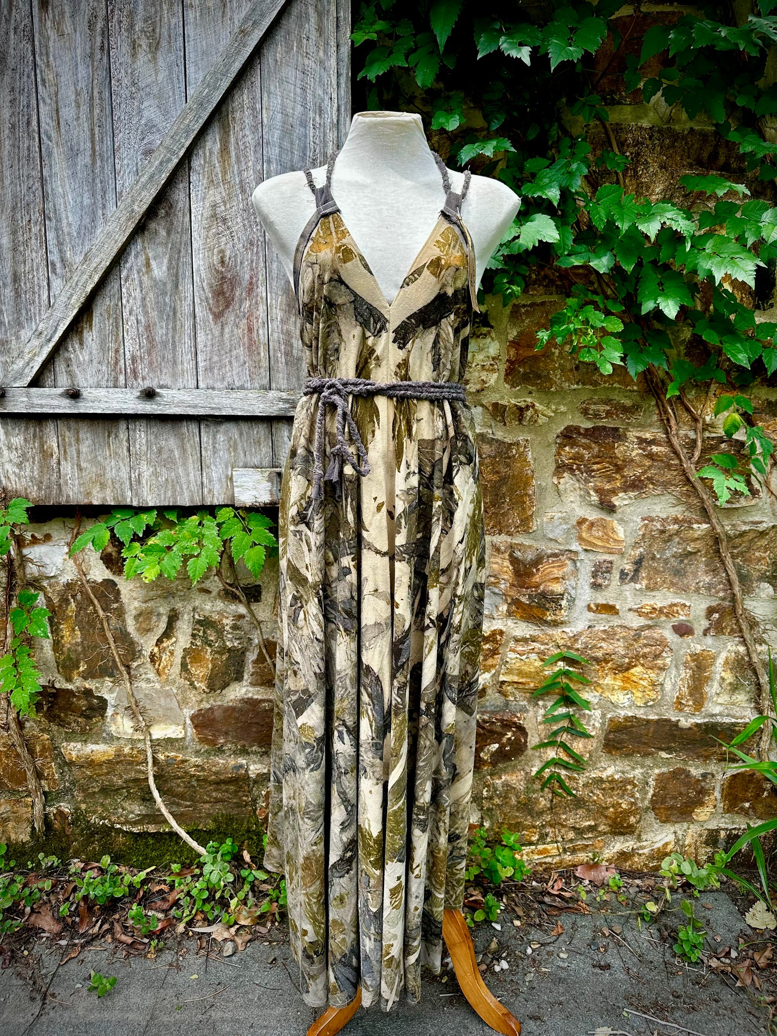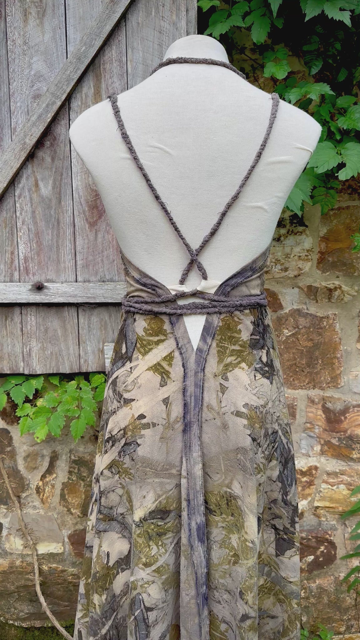 The Eucalyptus plant matter and onionused to dye the fabric is sourced from Wathaurong Country and Kabi Kabi Country. The intention was to create a dress that blended in with our stone walls.