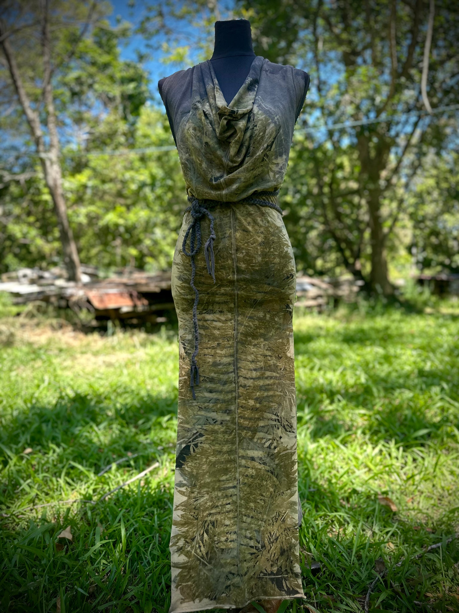 This dress was created from ethically sourced blend of hemp and organic cotton dyed with ferns from our subtropical home.